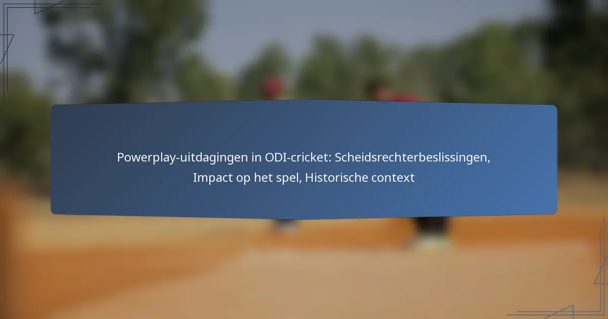 Powerplays in One Day International (ODI) cricket zijn kritieke fasen die specifieke veldrestricties opleggen, waardoor de strategieën van zowel de batsende als de bowlerende teams worden gevormd. Beslissingen van de scheidsrechters tijdens deze periodes kunnen een aanzienlijke impact hebben op de flow en uitkomsten van het spel, vooral in de vroege overs wanneer agressief spel wordt aangemoedigd. Het begrijpen van de historische context van powerplays onthult hun evolutie en de strategische diepgang die ze aan ODI-wedstrijden toevoegen.