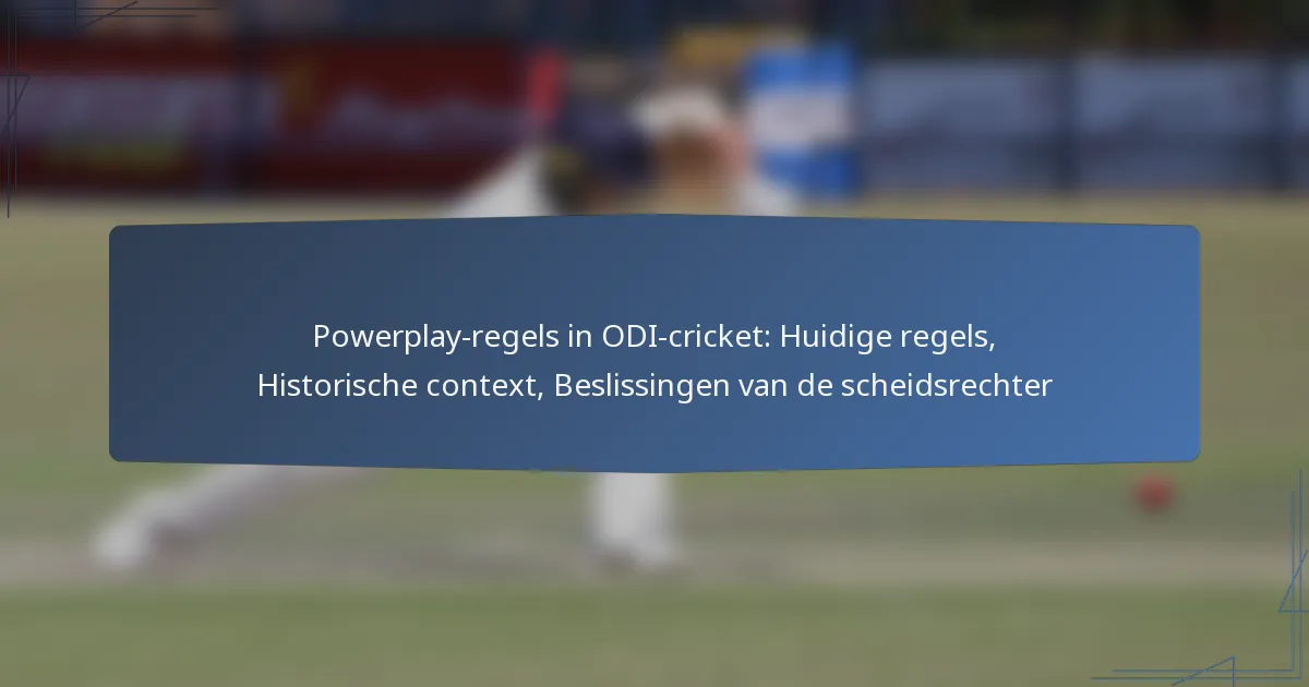 Powerplays in ODI-cricket zijn aangewezen overs waarin specifieke veldrestricties van toepassing zijn, wat de strategieën die door teams worden gebruikt aanzienlijk beïnvloedt. Sinds hun invoering zijn deze regels geëvolueerd om een meer gebalanceerde strijd tussen bat en bal te creëren, terwijl scheidsrechters een cruciale rol spelen in het handhaven van de regels en het behouden van de competitieve integriteit van het spel.